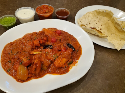 Very nice, actually. We went for the Chicken Kadai, a “medium spicy semi-dry Indian curry with onions, peppers, ginger and chef’s special spices” and it didn’t disappoint. The gravy was nice and thick with a good heat level. Based on this “medium spice” rating, we feel the Vindaloo will blow your socks off!